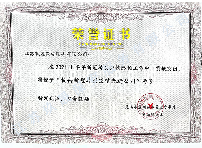 - 我們19年開(kāi)始和昆山玖晟保安公司合作,合作一直很愉快,尤其這次疫情期間,玖晟保安有條不紊的為我們守住園區(qū)的安全。好樣的。 ---帝浦拓** 2020-05-11